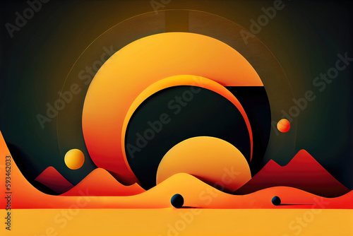 Orange minimalist desert landscape illustration with sun (Generative AI)