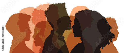 Menschen im Profil in vielen Farben als Solidarität Konzept