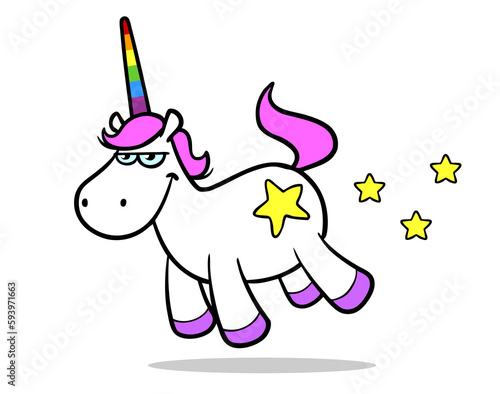 Schwebendes rosa Einhorn beim Pupsen von Sternen