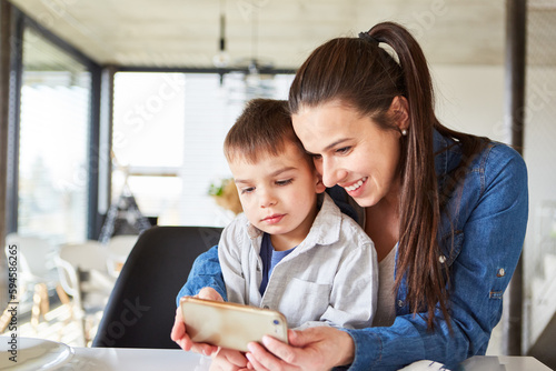 Mother and son video chatting on smartphone