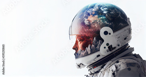 Double exposure of astronaut with earth on helmet (Generative AI)