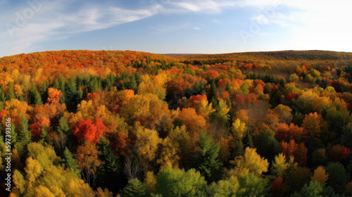 Leaves changing color in fall in a forest in nature (Generative AI)