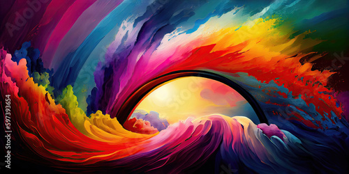 Colorful abstract ocean waves in rainbow colors as wallpaper background illustration