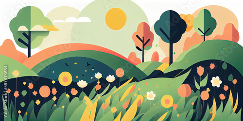Abstract colorful spring landscape with flowers background (Generative AI)