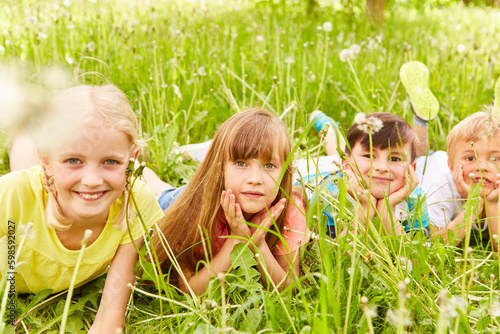 Entspannte Familie und Kinder im Urlaub im Sommer