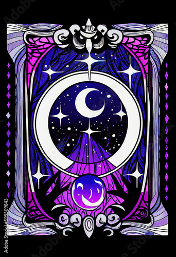 Illustration of lunar tarot card with moon at night (Generative AI)