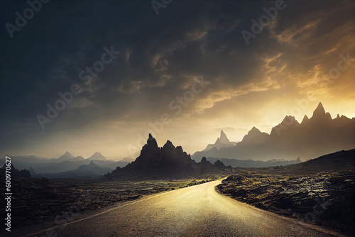 Alpine mountain peak landscape in beautiful pink sunset in winter (Generative AI)