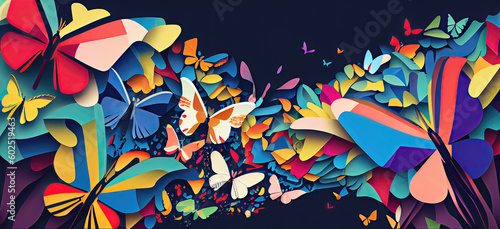 Abstract colorful butterfly wallpaper background header (Generative AI)