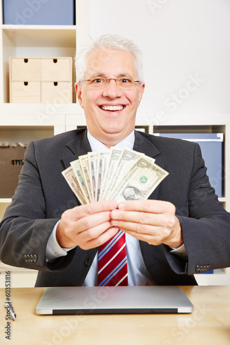 Geschäftsmann mit Dollarscheinen