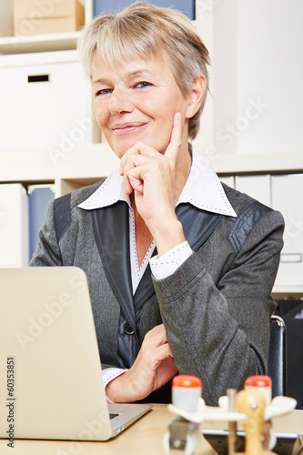 Hand mit Lupe sucht in Portraits als Umfrage und Marktforschung Konzept
