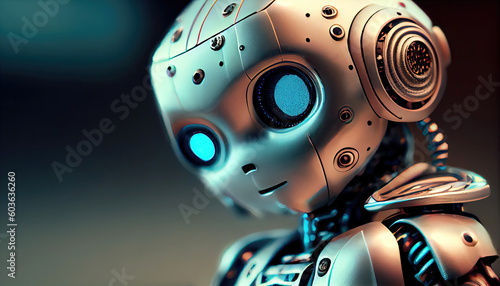 Cute friendly humanoid robot as close-up portrait (Generative AI)