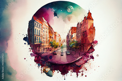 City skyline with skyscraper as watercolor painting (Generative AI)