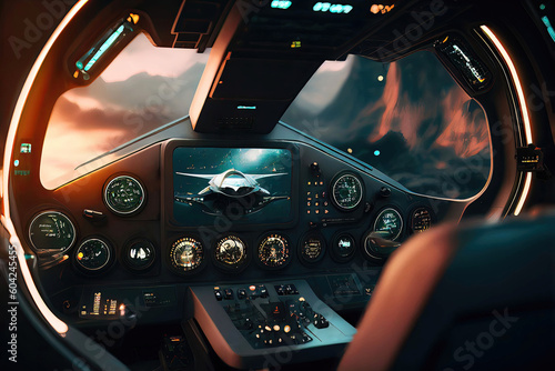EV Aircraft cockpit interior with control panels (Generative AI)