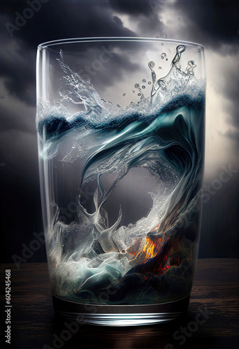 Storm in a waterglass as visualization of metaphor saying (Generative AI)