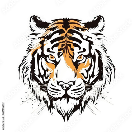 Black and white artistic illustration of an angry tiger head with enhanced detail