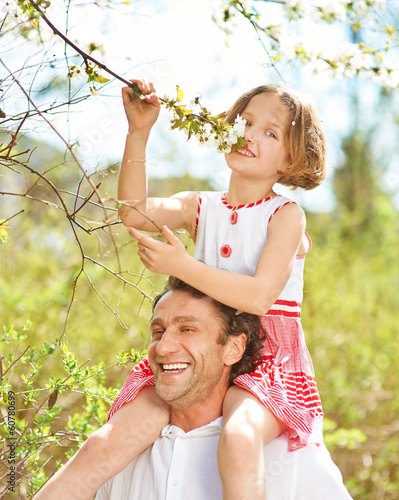 Vater und Tochter gemeinsam im Frühling