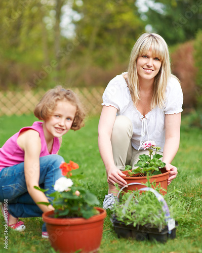 Mutter und Tochter im Sommer bei Gartenarbeit