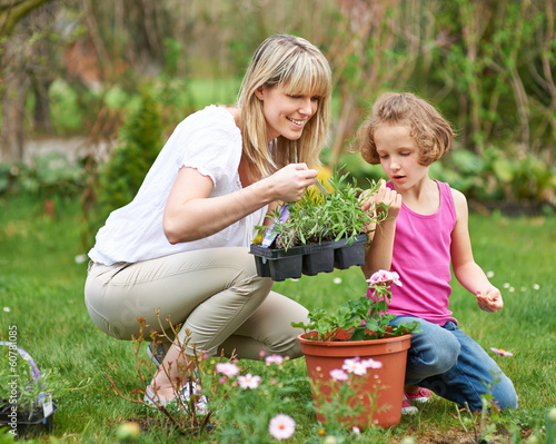 Mutter und Tochter im Sommer bei Gartenarbeit