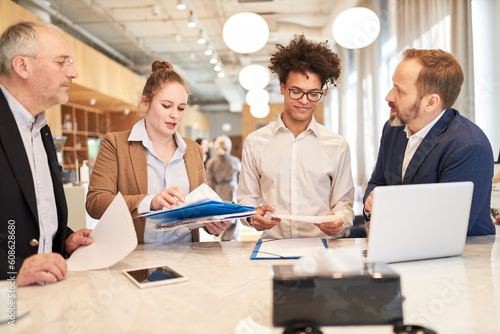 Consulting Berater diskutiert Strategie mit Start-Up Team