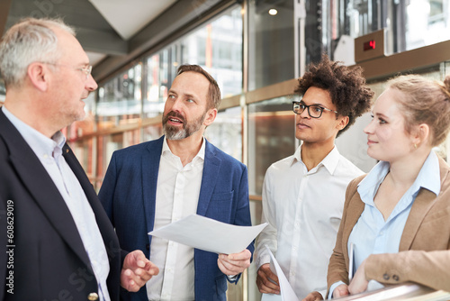 Geschäftsleute im Meeting mit Kollegin im Rollstuhl