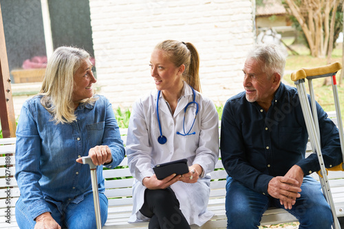 Altenpflegerin hilft Senior mit Demenz im Schlafanzug
