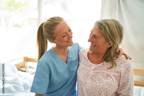 Physiotherapist assisting elderly woman in movement therapy at rehab center