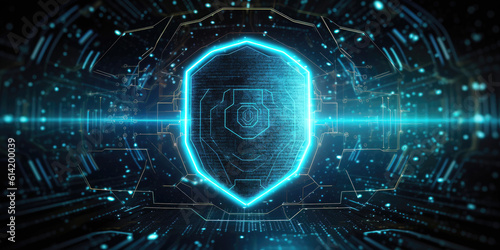 Cyber security concept with African American woman in glasses against a futuristic digital background