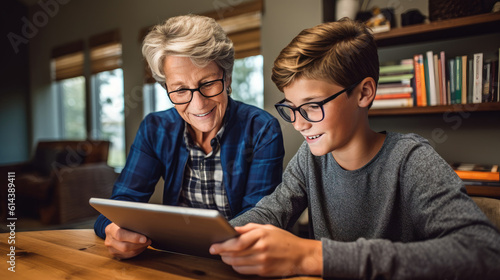 High school student learning online at home with tablet computer