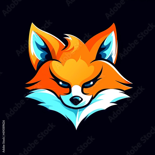 Cute smiling fox as flat logo design illustration (Generative AI)