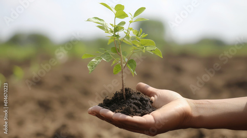 Hands nurturing a small plant in fertile soil, symbolizing care and growth