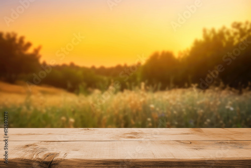 Empty wooden table with copy space as mock-up template (Generative AI)