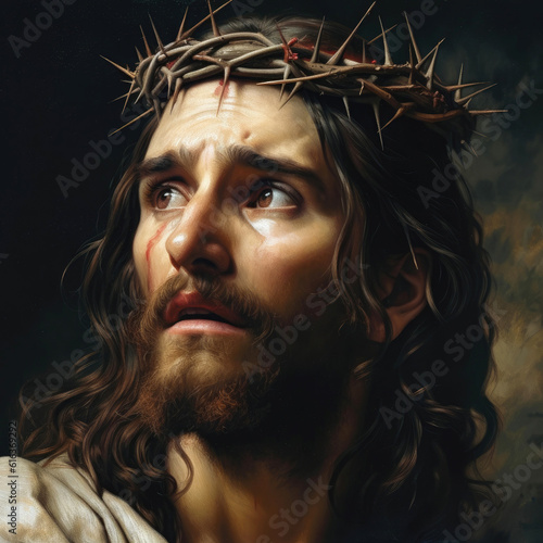 Incoronating Jesus Christ with crown of thorns (Generative AI)