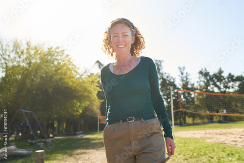 Smiling female farmer at ranch on sunny day