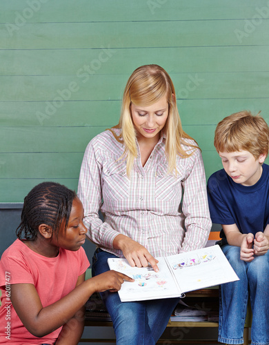 Grundschüler mit Lehrerin im Unterricht