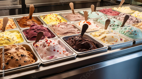 Isolated top view of delicious mango ice cream scoop with rich mango sauce on white background