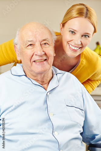 Pflegehilfe bei Senior im Rollstuhl