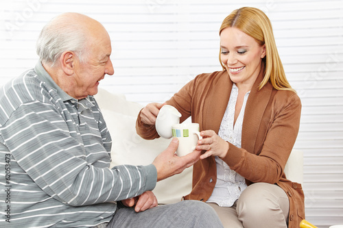 Senior und Frau trinken Kaffee