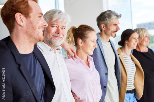 Row of happy business people standing in the office