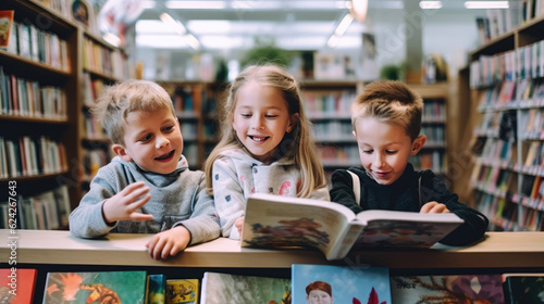 Schüler in Grundschüle trägt Bücher aus Bibliothek