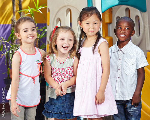 Frau als Kindergärtnerin mit Gruppe Kinder