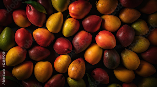 Heap of fresh, ripe mangos with light shimmering