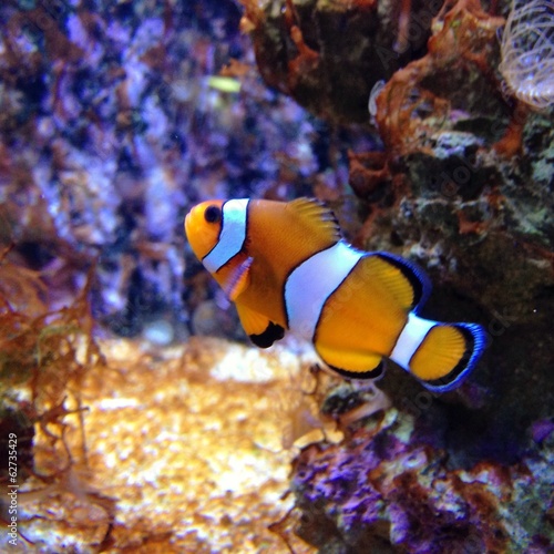 Vibrant clownfish swimming near coral reef in sunlit tropical ocean waters