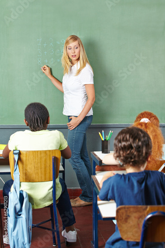Hand mit Lupe sucht in Portraits als Umfrage und Marktforschung Konzept