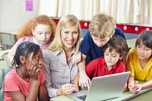 Hand mit Lupe sucht in Portraits als Umfrage und Marktforschung Konzept