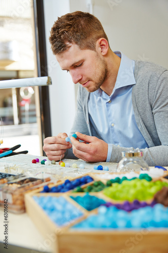 Artisan in workshop creating a necklace