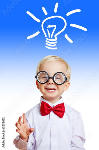 Kind hat Idee mit Ausrufezeichen über dem Kopf