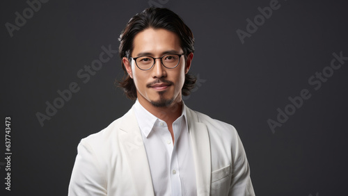 Confident young man in his 20s wearing a white shirt and tie, exuding professionalism and charisma in a studio setting