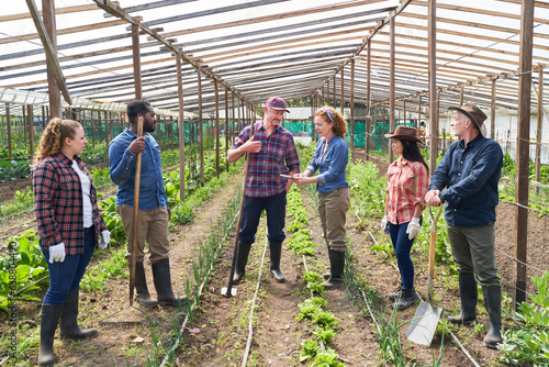 Group of farmers in greenhouse as farming collective