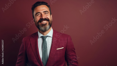 Portrait of a determined Hispanic man in his 40s wearing a suit and tie, conveying confidence and professionalism