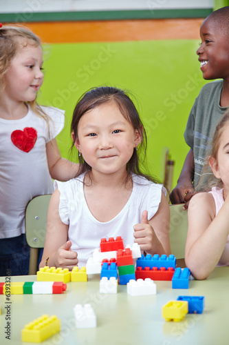 Kinder im Kindergarten beim Spielen mit Bausteinen